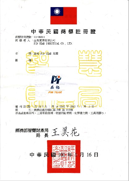 2012年1月16日取得臺灣經(jīng)濟部智慧財產(chǎn)局頒發(fā)商標(biāo)註冊證